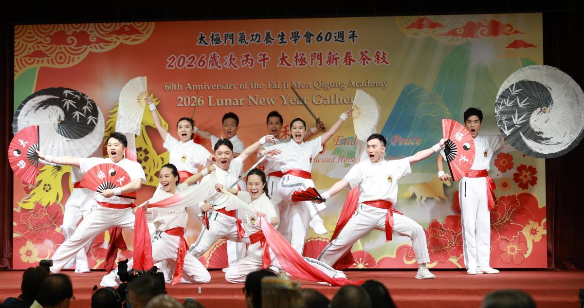 Celebrating its 60th anniversary, the Tai Ji Men Qigong Academy held the “2026 Year of the Horse Tai Ji Men Lunar New Year Gathering” on Saturday, March 7th, at the Howard Plaza Hotel in Taipei. The event was filled with a festive atmosphere and featured martial arts performances combined with AI technology to recreate memorable historical moments. It also reviewed the meaningful journey of Tai Ji Men’s grandmaster and disciples visiting 122 countries around the world, sharing love globally. Step by step, their efforts embody the spirit of “Peace, Sustainability, and Blessings of the Galloping Horse,” sending blessings to people on different continents.