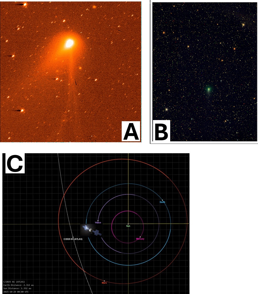 (A) 由JANUS相機拍攝的3I/ATLAS彗星影像