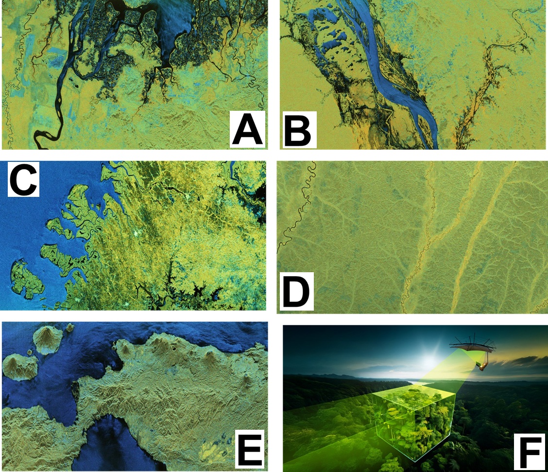 (D) 生物質雷達影像:中非剛果盆地的熱帶雨林