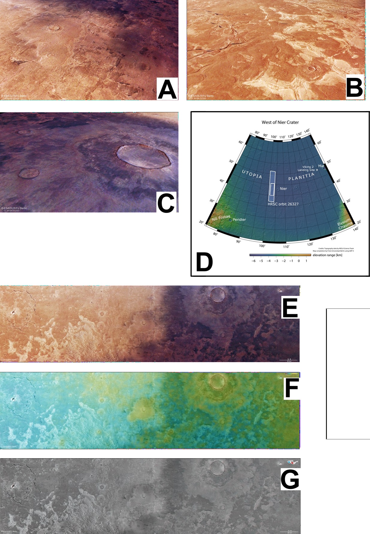 (G) 烏托邦平原一部分的 3D(浮雕)圖像